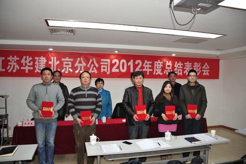 1月5日下午,北京公司隆重召开2012年度总结表彰会。陈荣春总经理在会上作了《加速转型升级 加大市场开拓 奋力推进北京区域市场新格局》的工作报告,报告对2012年北京区域公司的工作做了全面回顾和总结,并对下一阶段工作作了部署。2012年北京公司上下多方拓展经营渠道,努力扩规模保增量,积极探索发展转型,取得一定成绩。市场开拓稳步开展,经营渠道着力拓宽。在竭力稳固传统市场的同时,还积极拓宽渠道,谋划发展转型,参与两个房产项目的运作,通过两个直管项目的合作,努力探寻新的经营模式;技术质量成果斐然,创优树牌全力推进。1项工程获得北京市建筑长城杯金质奖(本年度北京市建筑长城杯金质奖住宅工程共评出7项),3项工程获得北京市结构长城杯银质奖,数谷大厦获得河北省结构优质工程奖,同时还被评为秦皇岛市建筑节能示范工程奖、秦皇岛市建筑节能十佳项目,另有3项工程获得呼市青山杯、青城杯。另外,金域华府007地块项目、万科蓝山5#楼精装修工程在分别获万科北方区域检查评比中获得第一名。QC活动方面, QC小组成果《改进预埋方法,提高悬挑脚手架预埋件的预埋合格率》获2012年度全国工程建设优秀质量管理小组二等奖。施工工法方面,公司编制的《SF防水保温一体化屋面施工工法》被评为2012年江苏省省级工法。优秀项目管理成果方面,公司结合项目案例组织编写了“集成技术改进,铸就管理提升”项目管理成果参加第七届全国建设工程优秀项目管理成果奖评比活动,荣获一等奖。学术交流方面,公司选送了14篇论文参加了2011年度扬州市施工学术论文交流会,其中3篇获二等奖、6篇获三等奖,5篇获交流奖;在此基础上选送了3篇参加了江苏省施工学术论文交流会;另外,有8篇论文在省级以上期刊发表。安全生产一着不让,现场管理措施有力。去年公司还对管理人员进行安全生产资格培训及考核300余人次、一线工人安全教育及考核约5000人次,组织在京项目部对在场施工的2000余农民工进行了普法维权和《职业病防治法》宣传教育,并组织300人次参加了北京市安康杯组委会的统一竞赛。去年公司共有2项工程获北京市文明安全工地,1项获天津市市级文明工地工程,1项工程获呼和浩特地区质量安全标准化工地,另外,秦皇岛数谷大厦已确定为河北省安全文明工地。陈总还对当前面临的困难和挑战进行了分析,并指出下一阶段要着重抓几个方面:一是积极调整经营思路,加大经营力度,努力在激烈的市场竞争中寻求发展空间。二是要努力提高管理水平,加大投入力度,不断增强发展后劲和市场竞争力。三是要积极谋划转型,拓宽经营渠道,主动策应市场形势的变化。四是要注重高层次人才培养,形成良好的用人机制,满足企业发展需求。