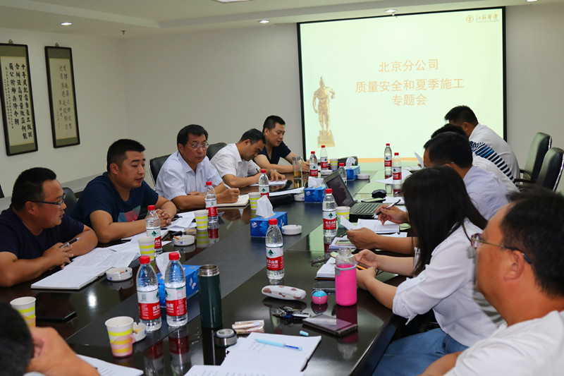 鉴于当前持续高温、雨水频繁的季节性施工特点和施工质量安全状况,7月22日下午,在北京公司会议室召开了北京、河北、天津地区工程质量安全和夏季施工专题会议。相关工程处生产主任、技术主任、技术科长、安全科长、在施工程项目经理、技术质量处和施工安全设备处全体参会。
