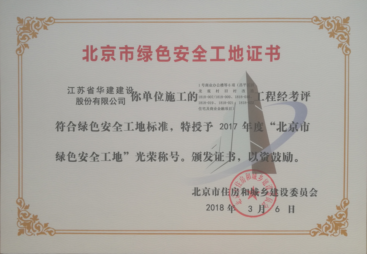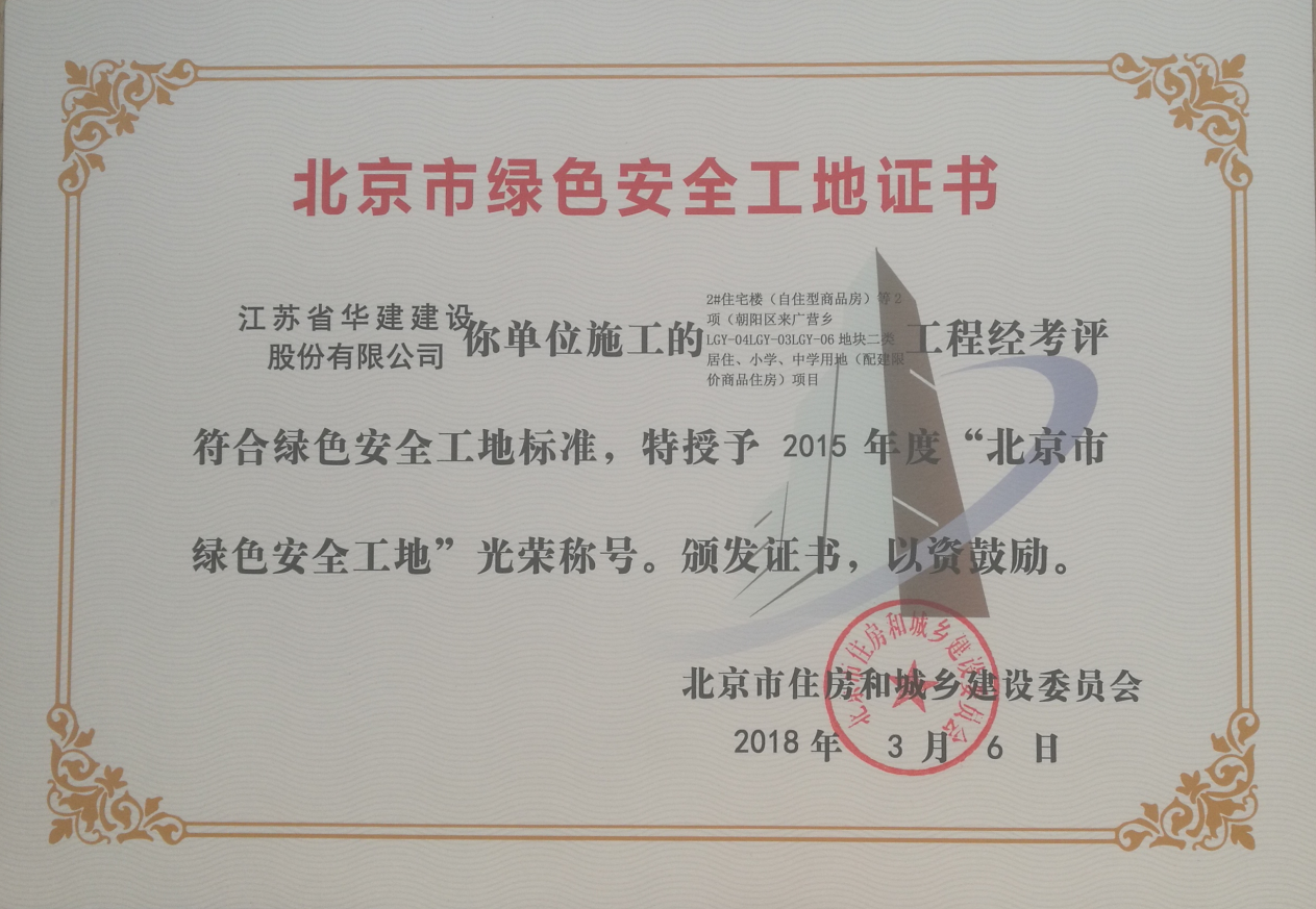 北京公司两项工程获北京市绿色安全工地 时间:2018-03-10 3596 近日,从北京市住房和城乡建设委员会传来喜讯,由北京公司总包承建的恒大名都2#住宅楼(自住型商品房)等2项及金域华府1号商业办公楼等6项两个标段项目荣获 “北京市绿色安全工地”光荣称号,并获颁证书。