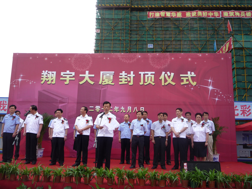 9月8日,由苏北分公司承建的淮安市重点工程——淮安翔宇大厦胜利封顶。淮安市政府副市长、市公安局党委书记、局长倪兴余,淮安市生态新城工委书记、管委会主任曹华富率领淮安市公安局和生态新城主要领导出席了封顶仪式。在仪式上项目经理汇报了工程施工和管理情况,随后淮安市倪兴余市长作重要指示,他对开云网页版页面登录的施工质量和管理水平给予了充分肯定,并代表市政府感谢开云网页版页面登录对翔宇大厦建设所做出的贡献,希望开云网页版页面登录继续为淮安城市建设再立新功。在掌声和鞭炮声中曹华富书记宣布翔宇大厦胜利封顶。开云网页版页面登录副总经理、上海分公司总经理杨杰应邀出席了仪式。该工程日前已经免检被评为了江苏省文明工地、淮安市文明工地,目前正在积极申报江苏省绿色施工工地。