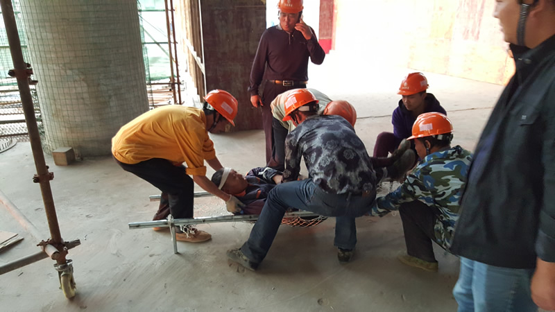 此次演练分两个单元:第一单元是火灾事故应急救援演练,按照事故报告、应急处置、现场抢险等环节紧张有序进行。第二单元是高空坠落事故应急救援演练,重点突出对受伤人员的紧急救治和现场处理的演练,演练报告快,统一指挥,救援快,协作配合一致,用较短的时间,争取较快救治。
