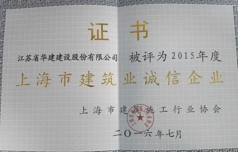 公司连续9年被评为“上海市建筑业诚信企业” 时间:2016-08-16 5296 上海分公司积极响应上海市行业主管部门要求全面贯彻落实《建设部关于加快建筑市场信用体系建设工作的意见》号召,在加强行业自律和诚信建设方面做了大量有效工作。8月16日,在上海市建筑施工行业协会召开的2015年度上海市建筑业诚信企业颁奖大会上,公司被表彰为“上海市建筑业诚信企业”(仅206家在沪建筑施工企业),这是第九次获此殊荣。