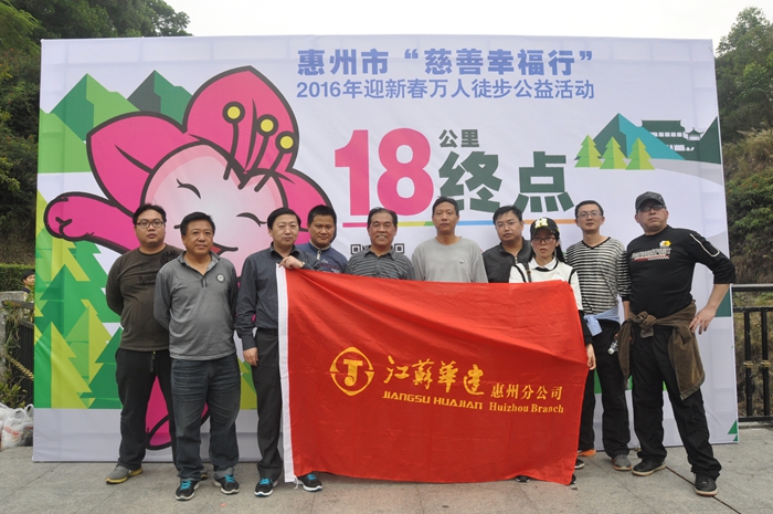 本次徒步活动在景色秀美的惠州红花湖景区举行,全程18公里,公司全体人员从红花湖景区入口处出发,沿着红花湖绿道一路前行。郁郁葱葱的高榜山和平滑如镜的红花湖合成一幅优美的画卷映入眼帘,让人神清气爽。徒步过程中,大家争先恐后,你追我赶,不甘落后,3小时内走完全程,无一人掉队。当日,正逢惠州市慈善幸福行2016年迎新春万人徒步公益活动拉开序幕,此次公益活动由惠州市民政局主办、市慈善总会承办,将慈善和健康元素融合在一起,公司员工纷纷表示元旦期间将踊跃参加,为公益奉献自己的一份力量,进一步丰富公司迎新年活动的内涵。