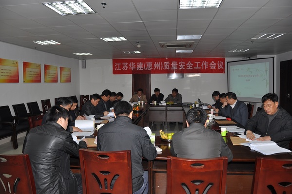 新年伊始,万象更新。2013年1月12日下午,惠州公司在机关会议室召开了2013年度质量安全工作会议,会议由惠州公司总工程师庞文荣主持。会上,对2012年度质量安全工作进行了总结,并继续与各工程处(项目部)负责人签订了年度《建筑工程质量责任书》和《安全生产和环境保护目标管理责任书》,进一步强化和规范各工程处的责任意识,为完成好全年目标任务夯实了基础。