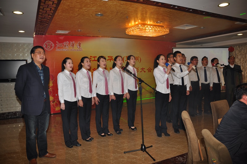 在随后的迎春联谊会上,一台由惠州公司上下精心准备、齐力打造、自编自演的精彩演出,表达出了广大员工对2012年取得业绩的自豪与喜悦,以及对公司美好未来的憧憬与向往。在演出中,由机具处员工庄曙演绎的男声独唱,以高亮的美声唱法,让在座嘉宾击掌叫好;四位机关员工表演的三句半《华建style》,诙谐幽默谈发展,回顾展望颂华建,让在场观众掌声不断;蔡总和华总两位领导带头献歌,唱出了华建人对事业的激情与豪迈,对未来的坚定与信仰。最后,由宗总、林总两位总部领导和惠州公司12名男女员工组成的合唱团献上的一曲《华建之歌》更是将整个活动推向了高潮,台上的小合唱变成了在场华建人的大合唱,掌声欢呼声此起彼伏,年会在欢歌笑语中圆满结束。新年思变,实干兴业,华建人立足惠州,一路高歌,奋勇前行。