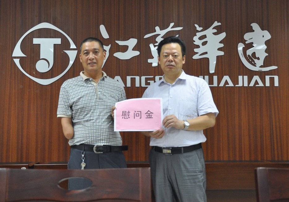 惠州区域公司慰问伤残员工 时间:2013-08-06 3671 夏日炎炎,酷暑难耐。开云网页版页面登录副总经理、惠州分公司总经理华恒荣率分公司工会亲切慰问了在惠州分公司第九工程处工作的伤残员工居家应(居家应90年代在宝应工作期间,不慎失去了右膀,被定为三级伤残)。慰问中,华总详细了解他的生活、工作情况,并向他发放慰问金,同时要求九处在工作、生活上给予一定的关心。居家应感谢组织对他的关心,表示身残志不残,更加积极努力的工作,不辜负组织的期望。惠州分公司总会计师高正金,分公司工会主席王健陪同慰问。