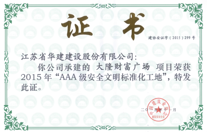 惠州分公司首获国家级荣誉奖项 时间:2015-11-09 3750 11月6日,惠州分公司总工程师庞文荣参加了在西安召开的中国建筑业协会建筑安全分会2015年年会暨理事会,会上表彰了2015年 “AAA级安全文明标准化工地”获奖单位。惠州分公司总承包施工的大隆财富广场成为今年惠州市唯一获此荣誉的项目,这是惠州分公司首次获得国家级荣誉奖项。