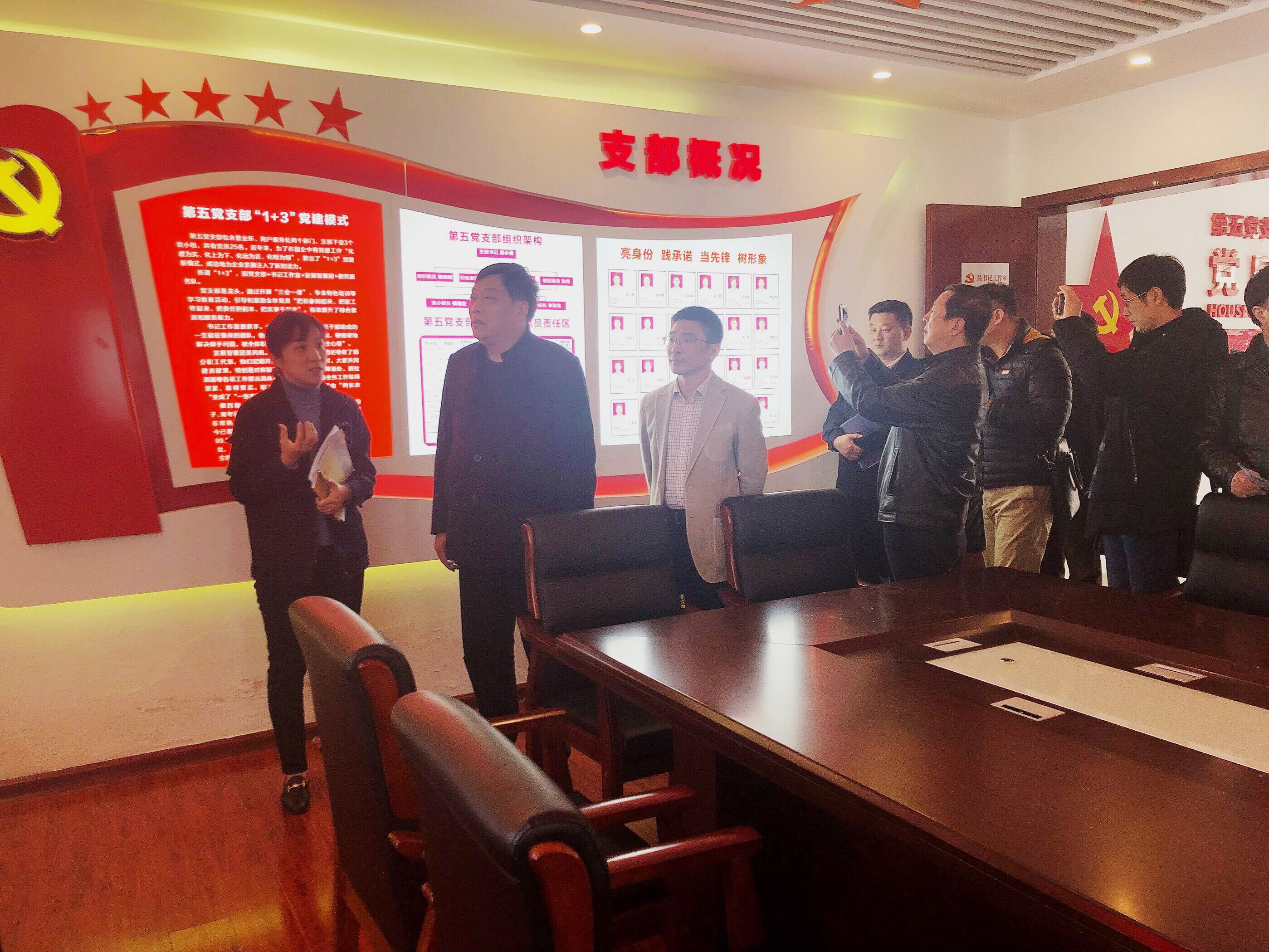 钱启明一行参观了长江水务公司服务大厅、第五党支部党员之家和吴书记工作室。通过观摩工作室的“1+3”党建模式,实地了解“支部概况”“两学一做”“党员园地”“学习园地”等板块展示,深入学习了第五党支部的特色党建工作成果。