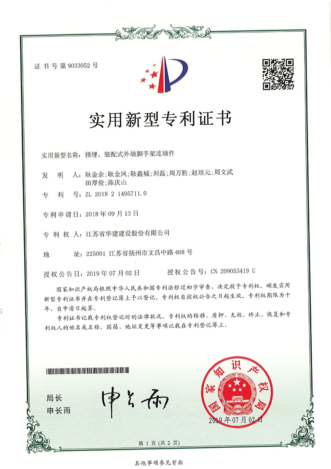 实用新型专利(预埋、装配式外墙脚手架连墙件)