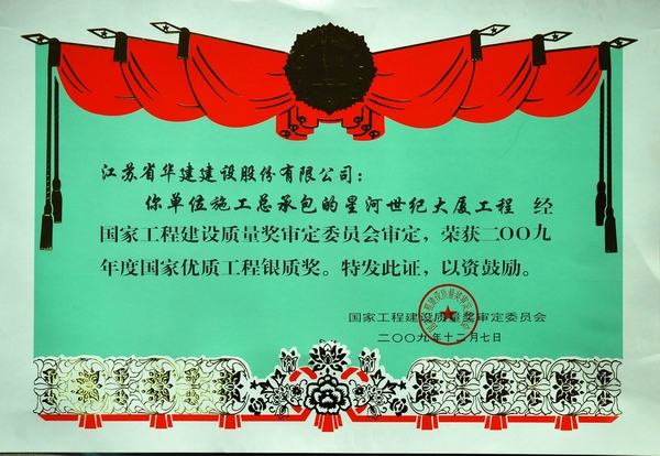星河世纪大厦 时间:2010-01-19 8392 该工程位于深圳市福田区深南大道南与彩田路西交汇处,是深圳市中心区东门标志性建筑。该工程一裙三塔,32-39层,高173.2米,总建筑面积156680平方米,是集办公、商业、住宅为一体的综合楼。 该工程先后荣获2006年度“深圳市安全生产文明施工优良工地”、2007年度深圳市优质工程“金牛奖”第一名、2007年度广东省优良样板工程奖、2007年度江苏省“扬子杯”省外优质工程奖,2009年12月被评为2009年度国家优质工程银质奖。