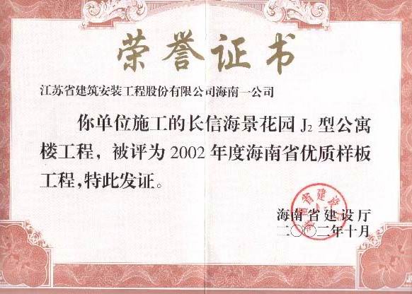 海口长信海景花园 时间:2009-03-05 2972 海口长信海景花园、长信海岸水城位于海口西海岸假日海滩旁边,由海口长信金安房地产开发有限公司投资开发,开云网页版页面登录自1998年参与长信海景花园一期工程建设以来,累计施工面积11423平方米,其中长信海景花园G3公寓楼、长信海景花园J2公寓楼、长信海岸水城1-1~1-4、长信海岸水城2-1~2-1、3-1~3-2、长信海岸水城6-4~6-5、长信海岸水城12-1~12-4等项目获得了共计6项海南省样板工程,长信海景花园J2公寓楼还荣获了2004年度全国用户满意建筑工程。