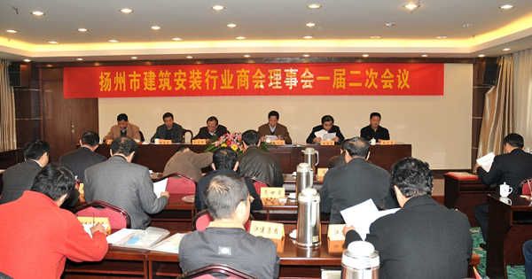 11月30日,扬州建筑安装行业商会理事会一届二次在扬召开,全市34家理事单位参加会议。市人大副主任、工商联主席、总商会会长孙永如,市政协副主席朱正海,市工商联党组书记、总商会副会长赵振东,市建工局副局长成自勇等领导出席会议。