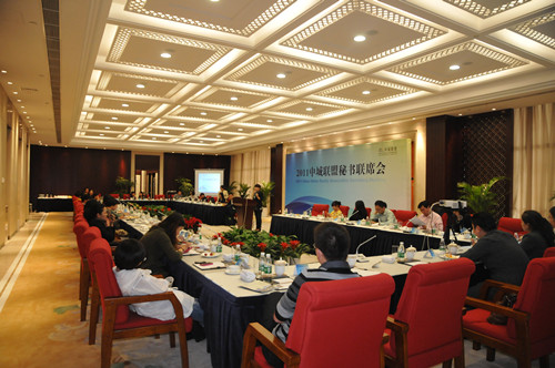 10月19-22日,2011年中城联盟秘书联席会在扬州召开,来自中城联盟成员单位的近50名领导秘书参加活动,我公司和南京新城发展股份有限公司作为东道主共同承办了本次活动。活动内容丰富多彩,中城联盟秘书长戴大为主讲了《联盟联合的力量》,参会人员进行了座谈交流,开展了“我的老板——分享活动”,参观考察了广陵新城之中国声谷、扬州小盘谷、玉器厂、工艺坊、瘦西湖、个园,并举办了中城联盟秘书家宴。会议结束后,中城联盟秘书处特地给陆金龙董事长发来感谢信,对我公司在承办本次活动中从会议服务到参观考察等各方面的精心安排表示感谢。