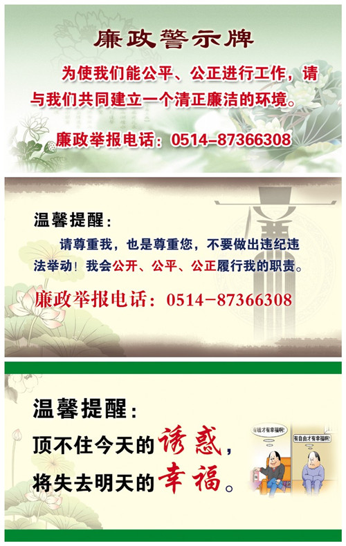 近年来,随着公司转型升级发展加快,房地产开发、污水处理、BT等灵活投资方式日益增多,公司党委非常重视投资项目廉政建设,为从源头上预防和坚决遏制公司投资项目建设过程中违法违纪行为的发生,决定由纪委、监察室总负责,对投资项目实施监察,实行工作前移、过程监督,并出台相关实施办法。监察工作具体由公司纪检监察室负责,除加强廉洁从业教育和相关法律法规教育外,重点督促和检查各项工作制度的建立和落实,与相关方签订《廉政责任书》、《廉政合同》,对重点环节进行督查,确保廉政责任与经营责任同步实施,同时在办公场所和项目现场设置醒目的廉政警示牌,公布举报电话,及时处理人民来信来访,查处违纪违规行为。12月中下旬,公司党委副书记、监事会主席吴士茂和党委委员、纪委书记钱启明及党委委员、副总经理程杰等领导先后赴盐城华建置业、扬州华盛置业开展廉政教育,组织全体员工举行庄重的廉洁从业宣誓仪式,并与相关方签订《廉政责任书》和《廉政合同》,希望公司工作人员严以律己、廉洁从业,并希望相关方理解和支持,共同打造优质工程、品牌工程、廉政工程。