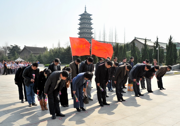 总部党团组织祭扫烈士陵园 时间:2012-04-01 4426 4月1日下午,公司总部机关党支部、团委组织机关党团员和入党积极分子前往扬州烈士陵园开展清明祭扫活动。在沉重舒缓的哀乐声中,大家向革命烈士默哀并敬献了挽联和鲜花,缅怀那些为了国家独立、民族解放和社会主义现代化建设献出宝贵生命的革命先烈,表达了用实际行动慰藉革命烈士、建设伟大祖国、实现民族复兴的坚定决心。公司党委委员、纪委书记钱启明参加了活动。