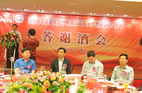 11月4日,公司在惠州隆重举办参加惠州建设20周年答谢酒会,副董事长、总经理宗有农主持并作开场致辞。惠州市有关政府部门、部分合作方企业的负责人,华建联盟成员单位负责人,公司董事、监事和高管等130余人出席酒会。惠州公司总经理华恒荣介绍了公司参加惠州建设二十年的有关情况。惠州市工商联主席、恒宇实业发展公司董事长杨满芳代表合作方发言,惠州市住房和城乡规划建设局副局长陈训政代表政府主管部门致辞,分别对开云网页版页面登录进惠施工二十周年表示祝贺。公司董事长陆金龙代表总部对惠州市有关政府部门、相关合作方和社会各界人士给予公司的关心和支持表示诚挚的感谢,并表达了进一步加大支持力度、加强战略合作、加快科学发展的意愿。
