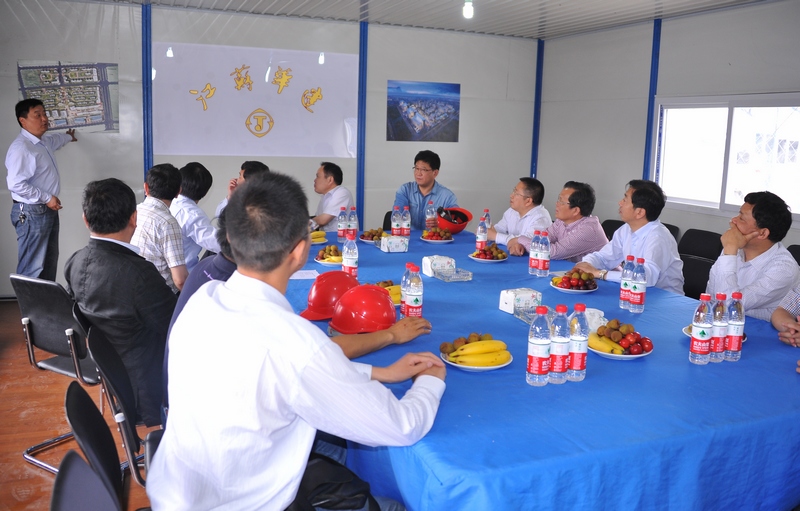 6月4日下午,陆金龙董事长一行赴上海公司万科虹桥万树商办项目进行调研。上海公司第一工程处项目部负责人首先向公司领导介绍了项目的基本概况和工程特色,并汇报了工程施工现状和时间节点要求。陆董事长表示,该项目是公司与万科在深圳、北京等地良好合作后在上海市场又一次强强联手,也是万科在上海大举进军商业地产的又一力作,对建筑形态、能耗控制、绿色建筑标准等方面都有较严的指标,公司上下要加强管控力度,提升管理水平,有效控制成本,群策群力,克服困难,努力把该项目做成精品工程。