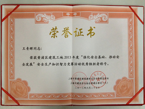 上海公司获得黄浦区安全知识竞赛第一名 时间:2013-06-26 3642 6月25日下午,上海公司外滩源项目部参加了由上海市黄浦区建设和交通委员会主办的黄浦区建筑工地2013年度“强化安全基础、推动安全发展”安全生产知识智力竞赛并夺得第一名。 上海公司委派外滩源项目经理王青辉为领队,项目部刘相旭、王堃、王勇三人代表公司参赛。他们一路顺利闯关,通过初赛进入决赛。在决赛中经过激烈的角逐,从39支参赛队伍中脱颖而出,荣获第一名,王青辉同时获得竞赛优秀组织者奖。 (杨秋林)