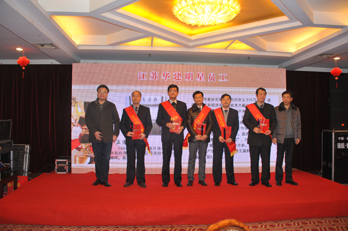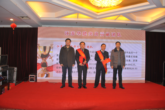 表彰会上,公司对2013年度表现突出的个人和团队进行了表彰, 34位员工获评“优秀员工”称号,朱靖、吕进、严正涛、朱旭生、陈明等5同志被表彰为“明星员工”,华建地产运河城市广场项目团队和开云网页版页面登录成都分公司团队被表彰为“突出贡献团队”。