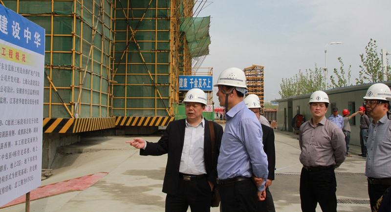 闻道才副市长赴安徽分公司视察东方蓝海项目 时间:2014-04-11 3384 4月10日下午,扬州市副市长闻道才一行赴安徽分公司视察了合肥东方蓝海B、C组团三标段项目。公司副总经理陆俊、副总经理、惠州公司总经理华恒荣陪同参加。 在项目现场华恒荣副总经理向来访领导简要介绍了开云网页版页面登录在安徽市场的发展战略及东方蓝海B、C组团三标段项目的施工情况。闻市长对施工现场、施工组织非常满意,并再三强调要抓好安全工作,争创优质工程,为扬州建筑业在安徽市场的发展做出积极贡献。