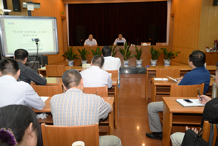 本次培训旨在进一步了解和掌握 “营改增”税制改革的相关政策,厘清财务与相关部门增值税责任,降低增值税错弊风险,实现公司“营改增”业务的平稳过渡。总会计师李长栋就“营改增”的重要性和迫切性作了讲话,强调需要加强学习和培训。中瑞岳华江苏分所合伙人韩攀登针对管理层和经营层从建筑业“营改增”的影响、意义与应对策略三大方面进行讲解,提醒大家未雨绸缪,防患未然。南京大学商学院兼职硕士研究生导师赵小刚引用具体案例来消除营业税与增值税的交叉混淆,抛出实际问题,从增值税征管实务的角度为大家细致分析解答。下午的培训以公司全体财务人员为主要对象,赵老师围绕纳税义务人、增值税专用发票、计税方法、纳税时间、征管模式等方面精细讲解,用理论与实例相结合的方式提醒大家一些注意事项并作相应的应对指导。