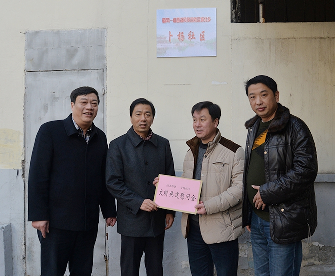 陆金龙董事长赴文明结对共建社区走访慰问 时间:2014-12-23 3617 12月23日上午,公司董事长陆金龙、纪委书记、工会主席钱启明一行赴公司文明结对共建的市城北乡卜杨社区进行走访慰问,并送上节日慰问金。陆董事长向社区赵华平书记了解了社区的基本情况和近期发展打算,并与社区主要领导对下阶段共建内容和计划进行了简单交流,为明年共建工作打好基础。 作为结对共建单位,公司积极响应市委市政府号召,始终坚持从解决当地实际困难出发,为百姓做好事、做实事,让他们深刻感受到华建对社区结对共建工作的重视和对百姓的浓浓关怀。