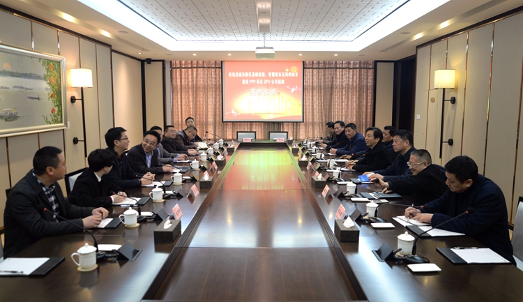 在陆董事长的陪同下,郑书记一行参观了公司企业展示中心。随后宾主双方在会议室进行了座谈。陆董事长向客人简要介绍了公司发展历程以及施工、地产、金融、多元四大板块的运行情况,并就公司的分配机制、管理理念等向大家作了分享。郑书记介绍了岳池县地域特征、经济发展等方面的情况,他提出双方要通力合作,全力以赴,以最佳节奏,最好质量把项目建设好,同时要以该项目为契机,建立深入长久、亲密互信的战略合作,利用华建的优质资源为岳池的经济发展助力,他还希望华建能支持当地扶贫工作,通过树立标杆,形成可复制可推广的模式。陆董事长表示华建将调集精干力量组成强有力的项目班子,共同发力,把该项目打造成典型项目、标杆项目,并通过地产招商、产业招商等对口招商形式做好资本嫁接,把岳池经济发展推向更高台阶。针对对口扶贫工作,重庆公司要做好实地考察和调研,结合区域特点和资源做好规划并提供支持,形成地方经济可持续发展。座谈会上,公司常务副总程杰和银泰投资董事长康伟共同签署了项目公司合作协议书。随后,闻道才副市长与大家进行了简短会面,他对ppp项目公司成功组建表示祝贺,勉励公司创新模式,规范运作,走出新路,进一步树立标杆,引领地方建筑企业抱团前行。