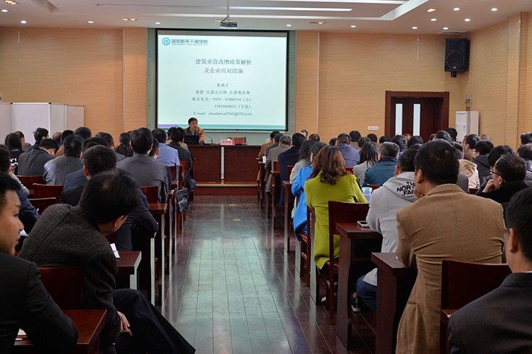 公司开展营改增试点业务培训 时间:2016-04-11 3556 4月5日和6日,公司财务部和华建学院联合组织的营改增试点业务培训分别在扬州和北京开班。公司总部、北京和上海区域公司、驻扬分支机构及公司联盟企业的主要负责人、经营和财务工作分管领导及有关人员共计210余人参加了培训。 此次培训特邀市国家税务学院陈斌才教授主讲。陈教授就建筑业营改增政策及企业应对措施作了专业分析和讲解,并与参培人员进行了互动交流,使参培人员对建筑业营改增有关政策有了更深刻的理解和认识,达到了预期效果。 按照培训工作计划,本月中旬还将在深圳和海南两地组织区域公司有关人员培训。