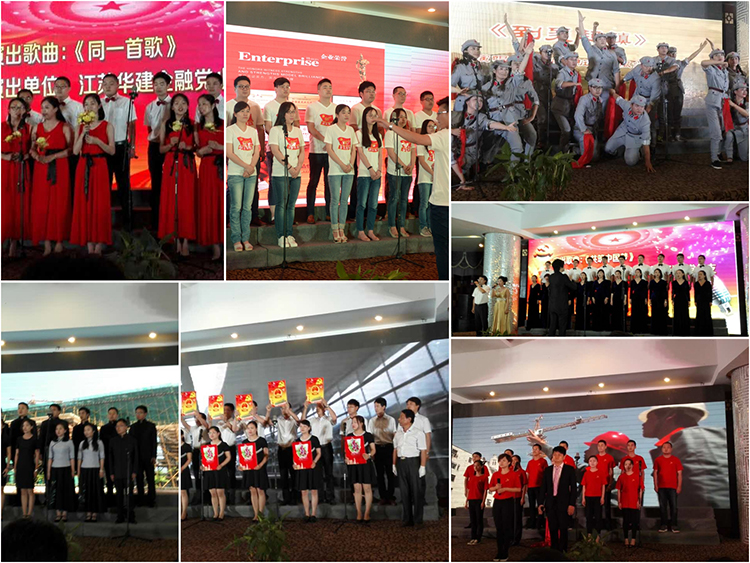 大会首先用歌咏比赛的方式拉开了帷幕,华建、扬建、扬安及所属基层单位党组织共选送了9个节目,《我们走在大路上》、《共筑中国梦》、《国家》、《跟着共产党走》、《到吴起镇》等一个个精彩的表演节目获得了热烈的掌声,展示了建工控股系统广大党员干部激情澎湃的精气神。