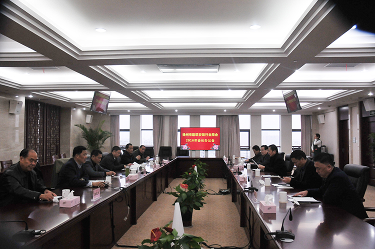 11月22日上午,扬州市建筑安装行业商会在扬建集团会议室召开2016年会长办公会,10家会长、副会长单位负责人参加会议,扬州市工商联(总商会)党组书记陈荣进、会员处处长田德兵应邀参加会议,商会秘书长列席会议。