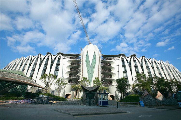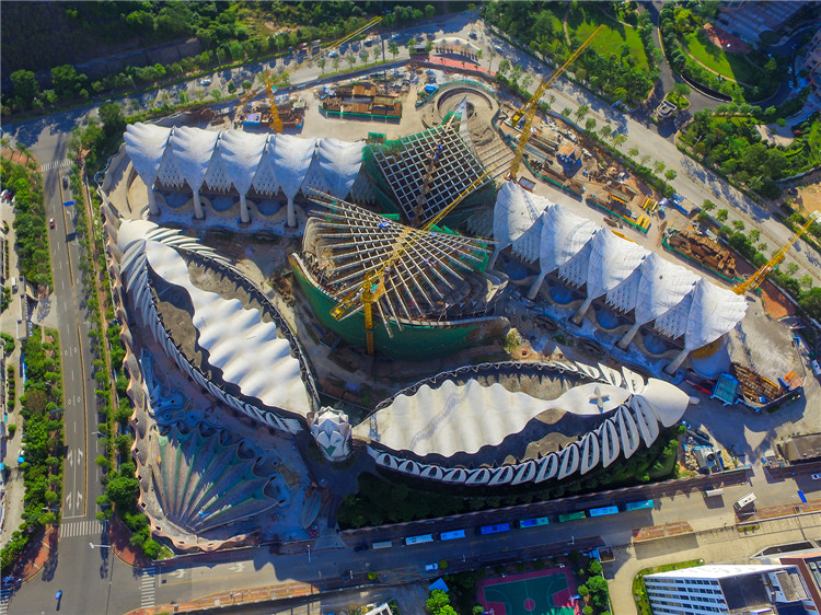 玛丝菲尔总部中心位于深圳龙华大浪时尚小镇,占地面积49800m2,建筑面积11万㎡,总投资10亿元。工程建筑外形采用当前最为时尚、最具风格的现代仿生学设计理念,所有建筑元素设计灵感都源于自然。建筑群俯视犹如展翅雄鹰,构件造型都按抛物线、螺旋线等几何规律设计。该建筑为国内目前面积最大的仿生艺术建筑、深圳龙华时尚小镇的代表性建筑,在国内建筑界引起了包括中国工程院院士在内的建筑专家的关注,未来有望成为国内时装秀的主会场。工程于2009年7月开工,目前一期工程装修完成50%,二期工程主体结构基本完成,进入装修阶段。一期工程1、2号厂房设有27对计54个叶片,每对叶片造型都不一致。中间设莲花状交通塔,屋顶设有波浪状屋盖。二期工程3、4号厂房分别设有6个双曲叶面板、5片网格梁和22个Y型钢柱。