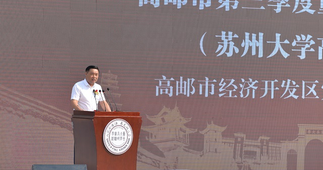 江涌在致辞中表示,苏州大学将集中一切优势资源,将苏大高邮实验学校项目办成区域内高质量人才培养的示范区、基础教育改革发展的创新区、优质基础教育资源的辐射区,加快高邮教育现代化建设步伐。