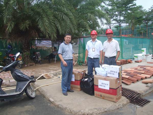王宏总经理赴施工一线慰问 时间:2012-07-08 5557 6月15日上午,公司副总经理、海南分公司总经理王宏带领施工安全设备处同志顶着炎炎烈日给三亚鹿回头国宾馆施工人员送去凉爽,对在一线施工的全体职工进行了慰问。送凉爽慰问活动是公司今年安全月活动一项重要内容,体现了公司领导对一线工人的关怀。