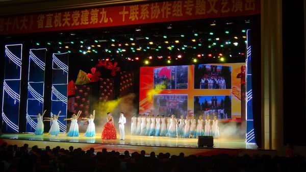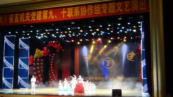 群团党旗红 喜迎十八大 时间:2012-08-12 4026 8月10日晚8:00,群团党旗红、喜迎十八大,海南省直机关党建第九、十联系协作组专题文艺演出在海南省工商职业学院礼堂隆重举行,江苏省驻琼建工企业党委作为第十联系协作组成员单位参与承办赞助了此次晚会,并精心组织和选送了大型歌伴舞节目《阳光路上》参加演出,受到省直机关工委领导、评委和广大观众的一致好评,达到了良好效果。江苏省驻琼建工企业党委书记王宏率广大党员、干部、职工共27人出席观看了晚会。