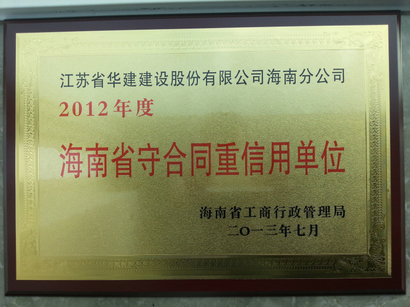海南分公司喜获海南省守合同重信用单位荣誉称号 时间:2013-09-02 3535 8月底,海南分公司被海南省工商行政管理局表彰为2012年度“海南省守合同重信用单位”,这是公司连续21年获此殊荣。多年来,海南公司坚持诚信为本,努力树立品牌意识、形象意识,通过真诚服务赢得顾客的信赖、市场的拓展,在工程施工中信守合同,确保质量和工期,取得了卓有成效的业绩。
