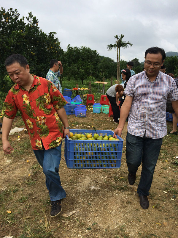 采摘,丰收的果实! 时间:2014-12-01 4033 南国椰风送秋意,海岛琼中结硕果。11月30日清晨,海南分公司组织绿橙采摘体验活动,机关二十多名员工参加。一路细雨一路歌、一路颠簸一路笑,在琼中鑫苹果园里,一排排、一垄垄,漫山的果树上结满了绿橙,大家热情高涨,兴致盎然,亲手体验采摘的乐趣、劳动的快乐、收获的喜悦和甘美。