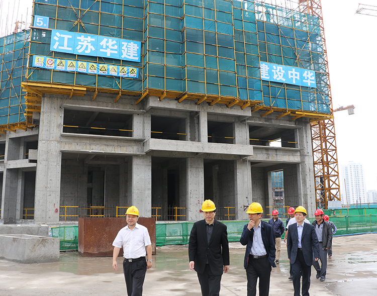 在公司承建的恒大外滩中心施工现场,朱市长与项目管理人员一一握手,向大家表示亲切问候。在陪同人员引导下,他饶有兴致地边走边看,听取项目负责人对工程特点、工程进展、工程用材等方面的情况汇报,不时点头称赞施工人员的工艺水平和施工技艺,并与项目部主要管理班子亲切合影。