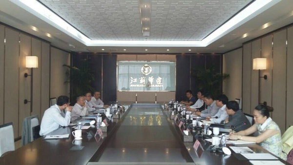 海建集团总裁吴亚春一行赴华建总部考察交流 时间:2015-10-19 3992 10月18日上午,海南省建设集团有限公司总裁吴亚春一行赴公司总部考察交流,公司常务副总程杰、海南公司副总高家驯及相关部门负责人参加接待交流。交流会上,程总介绍了公司的发展历程和基本情况,双方就苏琼两地建筑施工企业发展、用人机制、分配机制和管理理念等方面分享各自的经验与不足,并就寻求深度合作交流了意向,整个交流会气氛活跃,双方都感到受益匪浅。