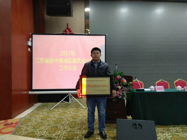 3月24日上午,江苏省人民政府驻深圳(广州)办事处和江苏省住房和城乡建设厅在海口召开2017江苏建筑业南方区工作会议,驻南方四省(区)100多家江苏建筑业企业参加了会议。江苏和海南两省主管领导到会并作了重要讲话,公司副总、海南分公司总经理陆俊出席会议并作为获奖企业代表交流发言。
