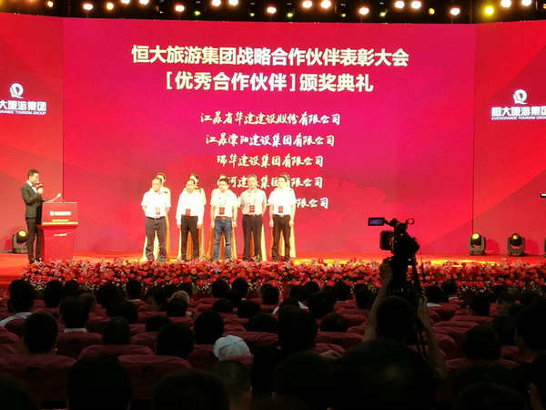我司被恒大旅游集团评为“优秀合作伙伴” 时间:2017-08-18 3036 7月30日,恒大旅游集团在海南儋州海花岛隆重举办“恒大旅游集团战略合作伙伴表彰大会暨海花岛动工两周年庆”。我司凭借与恒大旅游集团的良好合作,被授予“优秀合作伙伴”称号,公司项目经理吕正喜被评为“优秀项目经理”。公司副总、海南公司总经理陆俊代表公司参会并上台领奖。 另:恒大旅游集团对正在主体施工的单位进行了2017年第二季度综合评价,我司以综合得分82.32分位列21家战略合作伙伴之首。 (生小荃)