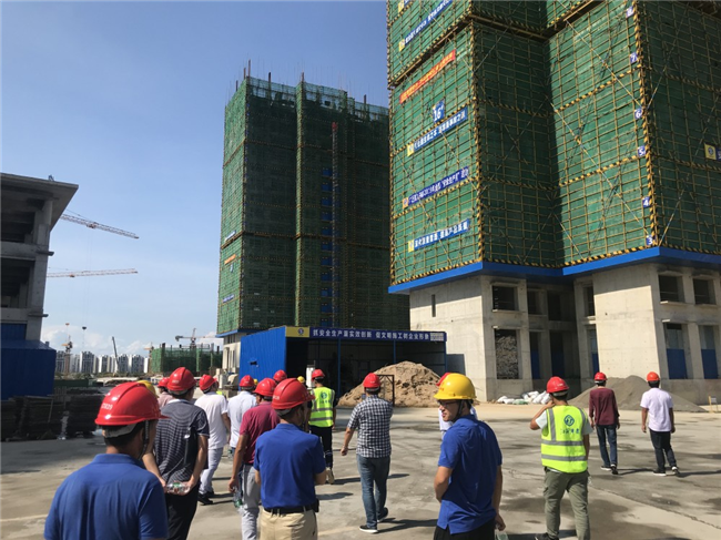 下午,公司组织各职能部门,工程处负责人,直管团队负责人,各项目部项目经理、技术负责人、安全员等主要管理人员对海口美丽沙项目进行了内部现场观摩。项目讲解员以PPT形式汇报讲解了美丽沙项目目前推行安全文明标准化施工成效及铝模使用经验。随后参会人员进入现场观摩并交流。通过施工现场观摩,起到了对照先进查不足,相互学习促发展的作用,达到了激励先进、鞭策后进的目的,进一步激发各项目骨干凝心聚力干项目和建设标准化工地的热情。(技术质量处)