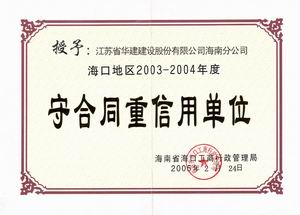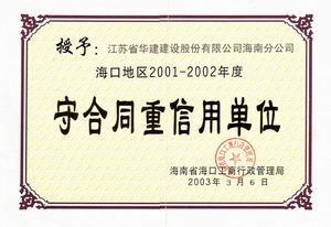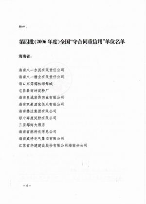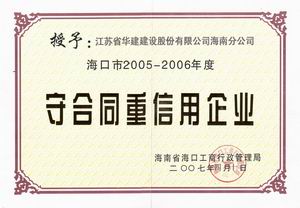 企业诚信荣誉 时间:2019-01-01 8643 2001-2002年度海口市守合同重信用 2003-2004年度海口市守合同重信用 2005-2006年度海口市守合同重信用 2002-2004年度海南省守合同重信用 2006年度全国守合同重信用1 2006年度全国守合同重信用2 2006年度全国守合同重信用3 2006年度全国守合同重信用4 2012年度海南省守合同重信用