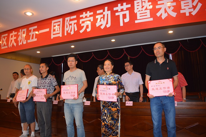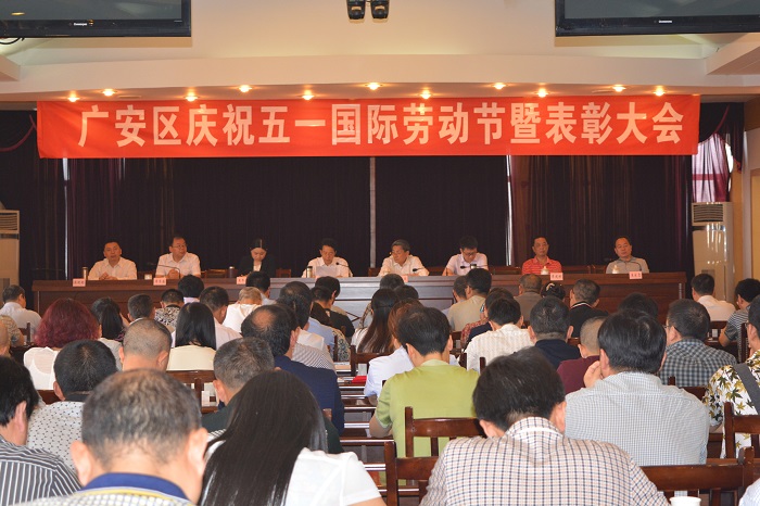 广安项目职工获广安区“五一”表彰 时间:2015-04-29 5203 4月29日,在广安区委、区政府组织召开的“庆祝五一国际劳动节暨表彰大会”上,重庆分公司市政工程处广安项目方坪大道技术负责人向辉同志被表彰为“先进工作者”。