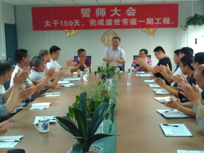 8月31日下午,盛世芳庭项目部在工地会议室举行“大干150天誓师大会”,开云网页版页面登录常务副总经理、总工程师程杰、珠海区域公司总经理缪国枢、副总经理严正涛、江苏扬安集团董事长李幼杰及项目部管理人员参加会议。