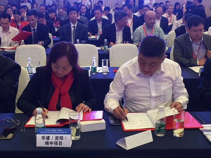 在推介会上,公司与资阳市川绵教育房地产开发有限公司举行绵阳中学资阳育才学校一期商住项目签约仪式,缪总与资阳市川绵教育房地产开发有限公司董事长严晗代表双方签订了项目合作开发合同。