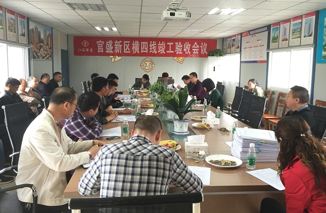 广安项目横四线通过竣工验收 时间:2016-04-09 3010 4月8日下午,广安项目横四线竣工验收会议在项目现场会议室召开,广安区住建局副局长周春兰主持会议。经项目监理、设计、区质监、交通等多个单位及业主现场代表实测检查、总结汇报后,一致同意工程验收合格。横四线作为一个单位工程,是官盛新区“三纵四横”七条次干道之一,道路全长1.01km,路幅宽度25m,双向四车道,全线均为路基形式。