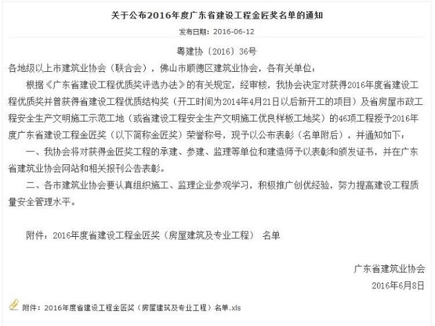 金匠奖是广东省建筑行业工程的最高荣誉奖,入围条件要求苛刻。开云网页版页面登录珠海区域公司首次获得本奖项,为公司树立了质量标杆,必将进一步推动区域公司打造精品工程,以实际行动诠释“铸造精品,追求卓越”的企业管理理念。