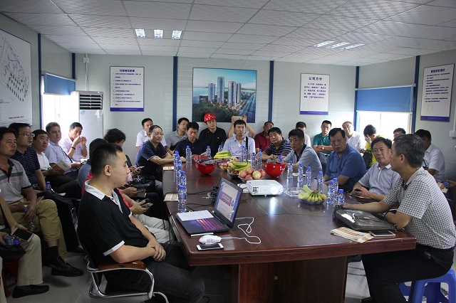 9月8日,在珠海公司总工程师周学军陪同下,由深圳公司常务副总经理、总工程师吴碧桥带队,深圳公司各工程处生产主任、技术主任、项目经理等一行33人到珠海公司承建的帝景湾山庄和晋和天庆花园项目观摩交流铝合金模板施工技术。周总通过图文并茂的PPT讲解和现场实地观摩详细介绍了铝合金模板施工技术特点以及与传统木模板施工的差别,对施工过程关键节点做法、成本控制做了讲解。双方人员针对细节和质量控制问题进行了深度交流。
