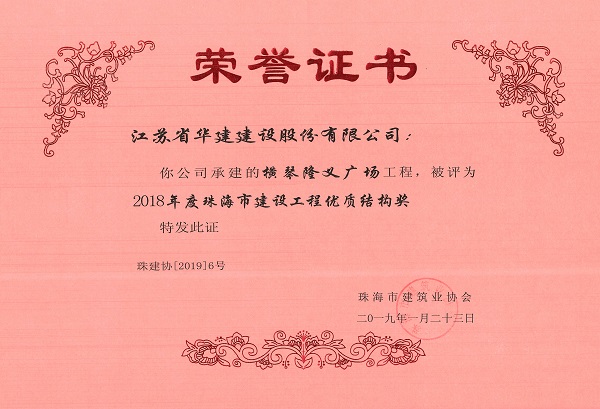 公司获评2018年度珠海市建筑业优秀企业 时间:2019-03-02 2419 3月1日,珠海市建筑业协会第四届五次会员大会在珠海德瀚大酒店隆重召开,会上对2018年度珠海市建筑业先进单位、先进个人、优质工程进行了表彰。珠海区域公司获评2018年度珠海市建筑业优秀企业,公司总经理吕方达荣获2018年度珠海市建筑业优秀企业家称号,左兆金被表彰为优秀项目经理。此外,公司3个项目分获表彰,晋和天庆花园一期工程获评2018年度珠海市建设工程优质奖(房屋建筑),横琴隆义广场、华策国际大厦被评为2018年度珠海市建设工程优质结构奖。