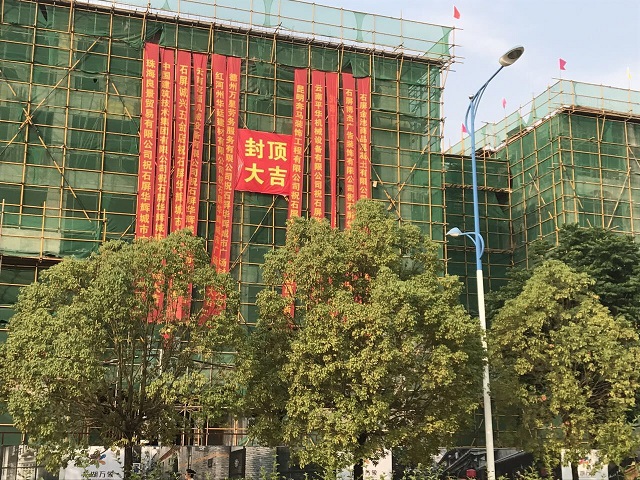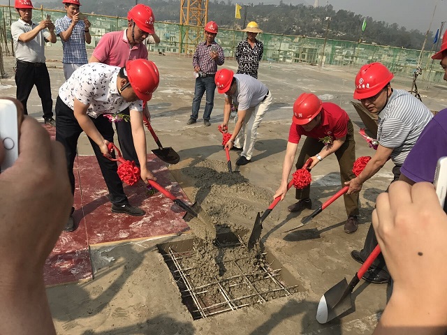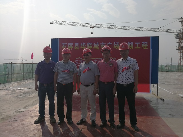 公司首个在滇项目——华辉城市广场顺利封顶 时间:2017-05-07 3017 5月6日,公司首个在滇项目——云南石屏县华辉城市广场举行主体结构封顶仪式。重庆分公司总经理严正涛出席仪式。 华辉城市广场项目位于石屏县新城核心中央地段,为该县城的“CBD”。整个建筑面积为18万平方米,地上面积为13.4万㎡,地下4.5万平方米。其中一期工程建筑面积为93843.78平方米,承包范围土建、水电、消防、门窗、室外园林绿化等工程(即除电梯工程外),一期主要以商业开发为主,项目结构为框架,以3层结构为主,预计2017年6月竣工。